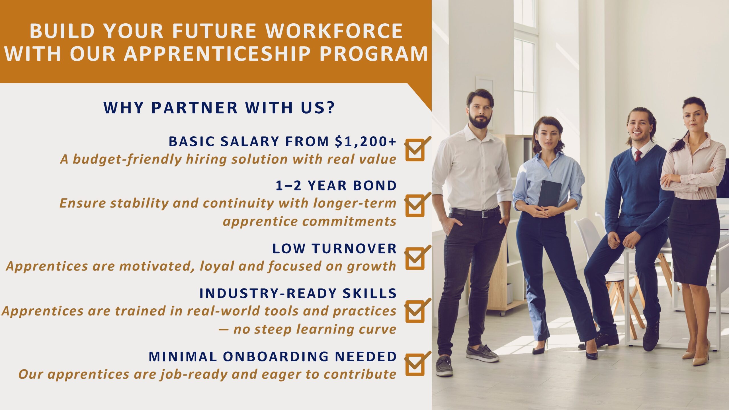 Looking for skilled, motivated, and cost-effective talent? Our Internship Placement Program connects you with academy-trained interns ready to contribute to your team for a full year — and beyond.